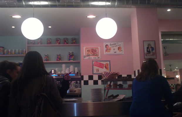 Inspirada en los años 50', entrar a tomarte un batido con sabor a chicle es como entrar en el túnel del tiempo o en la película de John Travolta "Grease". Decoración colorida y alegre con taburetes y mesas de lo más chulas.