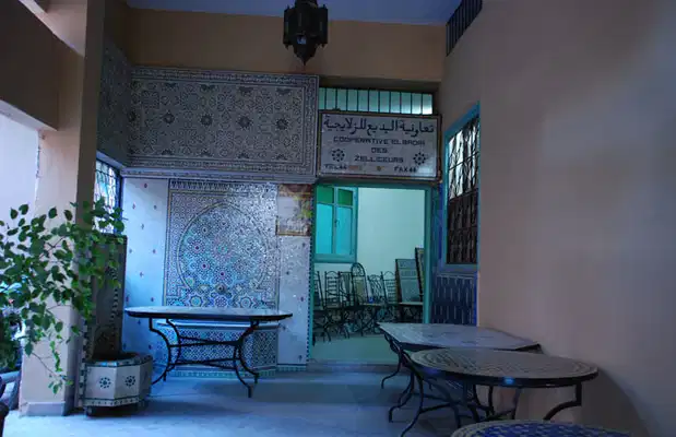 La Cooperativa Elbadia está especializada en la creación de cerámica típica marroquí: El zellige. Su local está situado en el Centro Artesanal de Marrakech, en la avenida Mohammed V, a medio camino entre la place de la Kotoubia y la place de la Liberté.