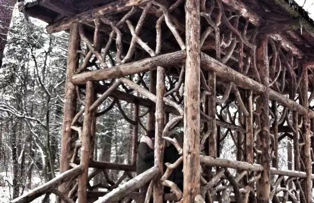 El paseo por los jardines de La Granja guarda dos sorpresas muy especiales para todos los que decidimos andar durante 20 minutos camino arriba. Uno es el estanque "El Mar" y el otro es precisamente este, el romántico Puente de los Suspiros. Construido con madera de pino de Valsaín, la foto en su interior es casi obligatoria.