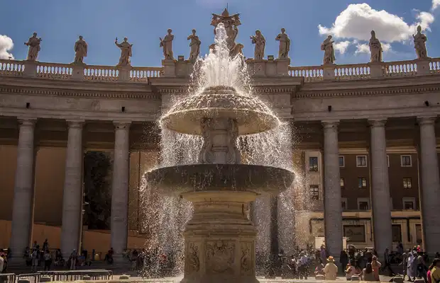 Para mí, la Plaza de San Pedro fue tal vez más impresionante que la basílica misma. Como una obra de arquitectura, es casi inigualable - las relucientes columnas blancas que se acercan a ti como brazos que te dan la bienvenida a la Basílica de San Pedro, la asombrosa simetría, la fuente de Bernini y las interminables estatuas que vigilan bajo el cielo azul. Vamos, que visitar la Plaza de San Pedro evoca algo dentro de ti que te hace saber que estás en un lugar muy, pero muy especial.