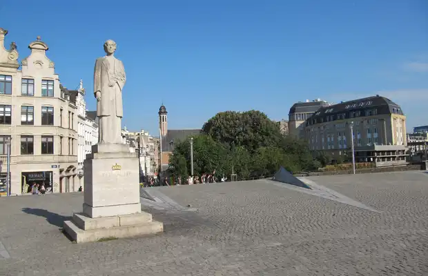 Esta escultura, realizada por el escultor René Cliquet, nos da la bienvenida al Mont des Arts. Situada al comienzo de los jardines de la Place de L'Albertine, frente a la de su esposo el rey Alberto, es un homenaje a la reina Isabel de Bélgica, conocida por su amor a la cultura.