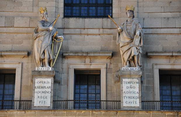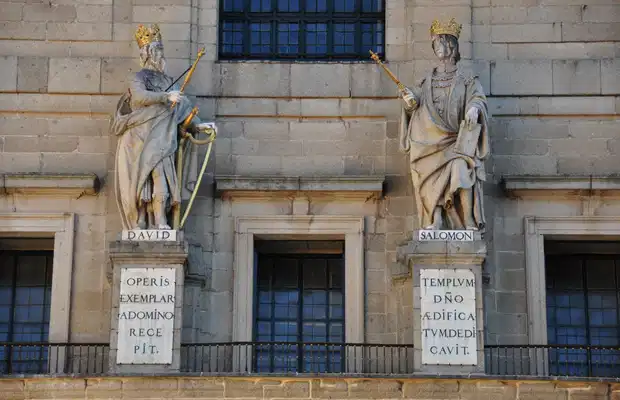 El monasterio de San Lorenzo de El Escorial tienen un montón de rincones especiales. Uno de mis favoritos ese este patio en el centro del complejo que da acceso a la basílica. Tras cruzar la puerta de la calle, cruzar el control de seguridad y dejar a un lado la biblioteca, uno se encuentra dentro del patio frente a la entrada a la iglesia, viendo la fachada con sus esculturas de los seis reyes de Judá. Sin duda uno de los lugares que ver en El Escorial, uno de esos pueblos bonitos cerca de