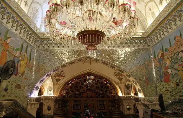 En el bazar de Isfahan, nada más salir de la plaza del Imam por la puerta sureste, se encuentra este precioso restaurante tradicional que ofrece mesas y sillas convencionales, cubiertas por los tradicionales manteles de algodón decorados con estampaciones de diversos colores, pero también las típicas estructuras iraníes. Un buen lugar para disfrutar de una rica sopa, un yuye (kebab de pollo) o un dizi (guisado de garbanzos y cordero con una peculiar presentación en la mesa). Las fotografías de dizi corresponden a otros restaurantes.