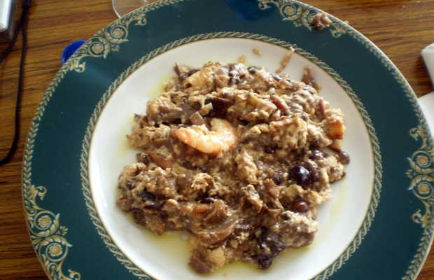 Había varias cosas para elegir, pero me decanté (recomendada por la camarera) por un revuelto de sepia con setas y langostinos, y unos chipirones a la plancha con salsa de gambas y almejas. Estaba todo buenísimo, y las raciones fueron más que abundantes (no pude terminarlo). El "zarzuela veraniega" de postre fue impresionante, era un plato variado con diferentes tipos de tartas, una especie de crema catalana y helado. ¡Exquisito!