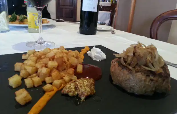 Hemos comido en la cocina de la dehesa que es el restaurante del club de golf la dehesa de Villanueva de la Cañada y la experiencia es para repetirls. En un comedor precioso viendo el campo de golf nos han servido una Hamburguesa