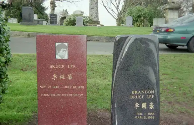 Bruce Lee esta enterrado en Seattle Washington en el cementerio Lake View. A su lado esta enterrado su hijo Brandon. Ambas tumbas son preciosas y grandes y siempre hay flores o fruta como ofrenda de la gente que viene. El cementerio Lake View tiene unas vistas preciosas del lago Washington.
